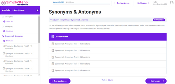 Academics – SimplySteno offers courses in Vocabulary, English, Medical Terminology, Legal Terminology, CAT software, and Procedures. We keep things basic and to the point. We want the bulk of your practice time to be on your steno machine. If you’ve taken these academics previously in another court reporting school or program, it’s up to you whether you take them again.