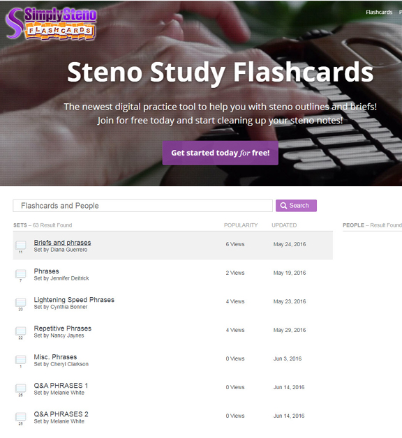 SimplySteno Flashcards – English on one side – steno on the other. It’s a great way to practice your steno outlines. Create your own sets or use sets created by others. With over 40,000 cards in the system, you’re bound to find the exact drill you need. Control the speed of the cards and nail those steno outlines down! Included as part of the SimplySteno program.